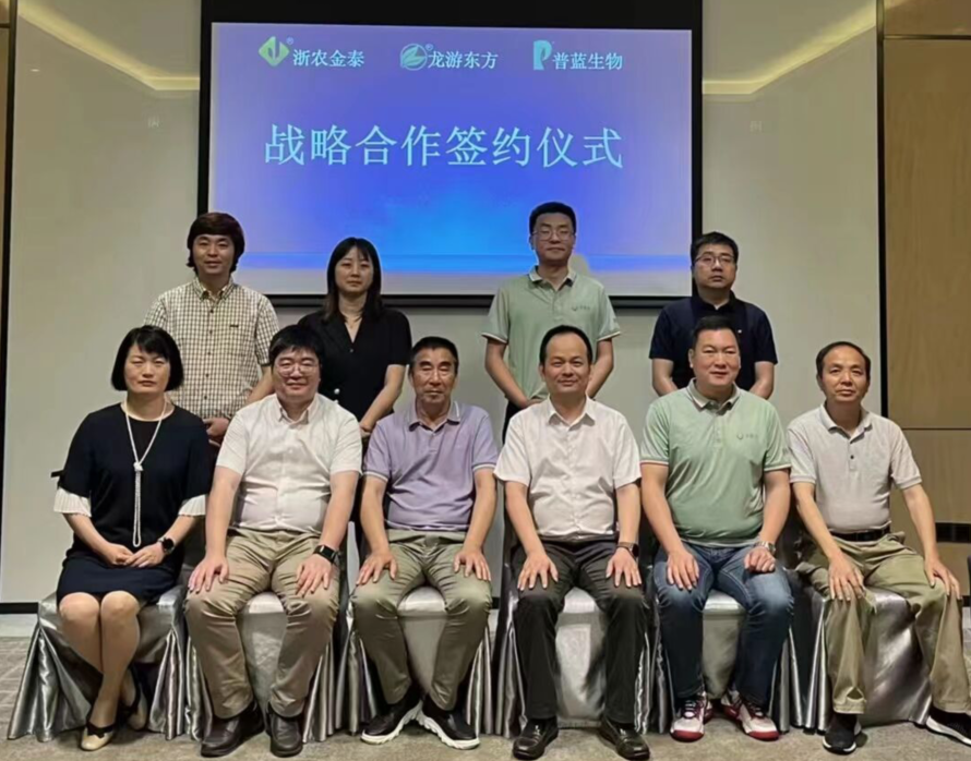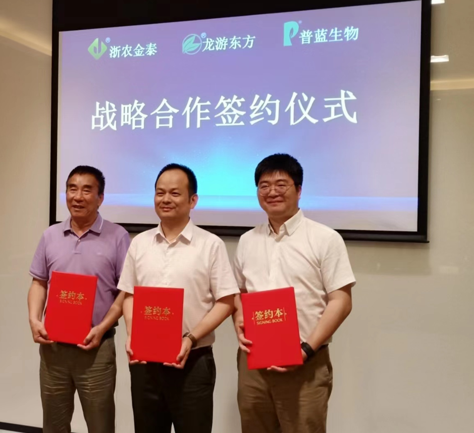 2022年6月13日,浙農股份旗下子公司浙江浙農金泰生物科技有限公司、浙江龍游東方阿納薩克作物科技有限公司和杭州普藍生物科技有限公司在浙江杭州隆重舉行戰(zhàn)略合作簽約儀式。浙農金泰總經(jīng)理鄔王城、總經(jīng)理助理楊森,龍游東方總經(jīng)理徐建自、副總經(jīng)理龔國華,杭州普藍總經(jīng)理徐迪凡、副總經(jīng)理賴軍麗出席簽約儀式。