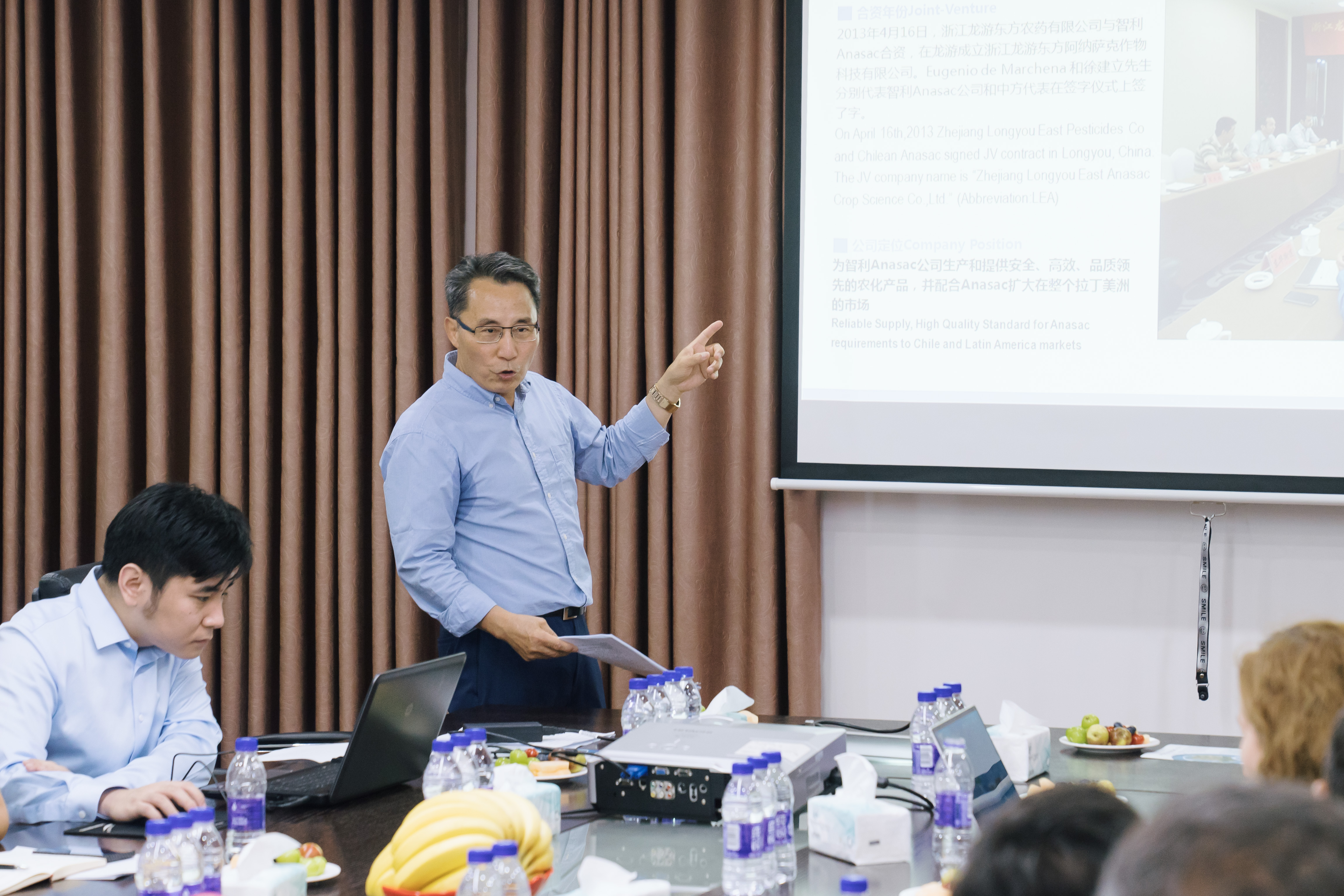 徐董事長對(duì)企業(yè)發(fā)展情況作了簡要介紹,公司定位為智利Anasac公司生產(chǎn)和提供安全、高效、品質(zhì)領(lǐng)先的農(nóng)化產(chǎn)品。2017年新廠的落成,標(biāo)志著企業(yè)現(xiàn)代化改造又升級(jí)了一大步,未來將會(huì)瞄準(zhǔn)生化農(nóng)業(yè)的前景,積極開發(fā)生物農(nóng)藥產(chǎn)品。